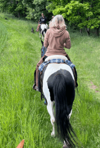 Ab 2025 geht er nun, 6 jährig, zuverlässig unter Reitkunden seine Wege. Ein sehr ruhiges, ausgeglichenes Jungpferd, welches aber noch viel die Reiteranlehnung sucht.